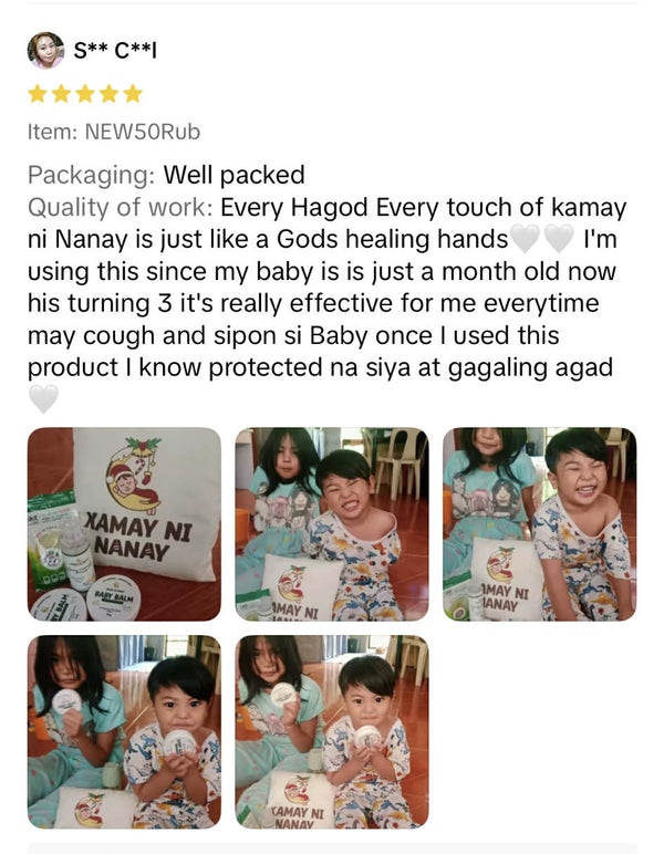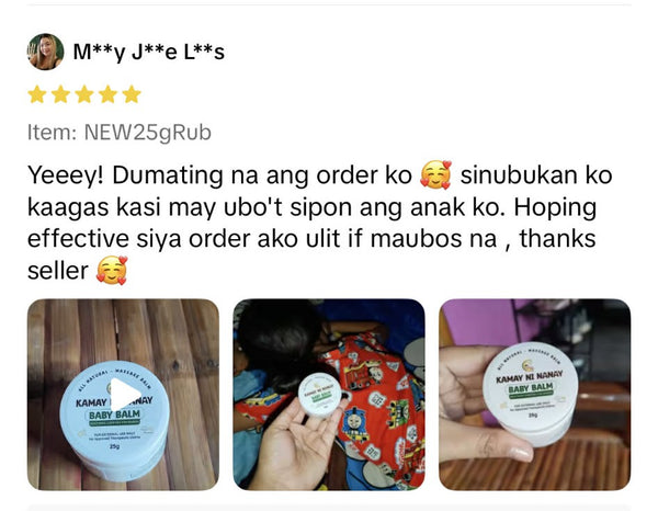 "Super effective nito sa ubo ng baby ko. Ilang pahid ko lang nawala at gumaling na si baby kaya nag order ako ulit para if ma ubos una kong binili may extra or reserba pa ako. Na uuso kasi ngayon ang ubo at sipon"